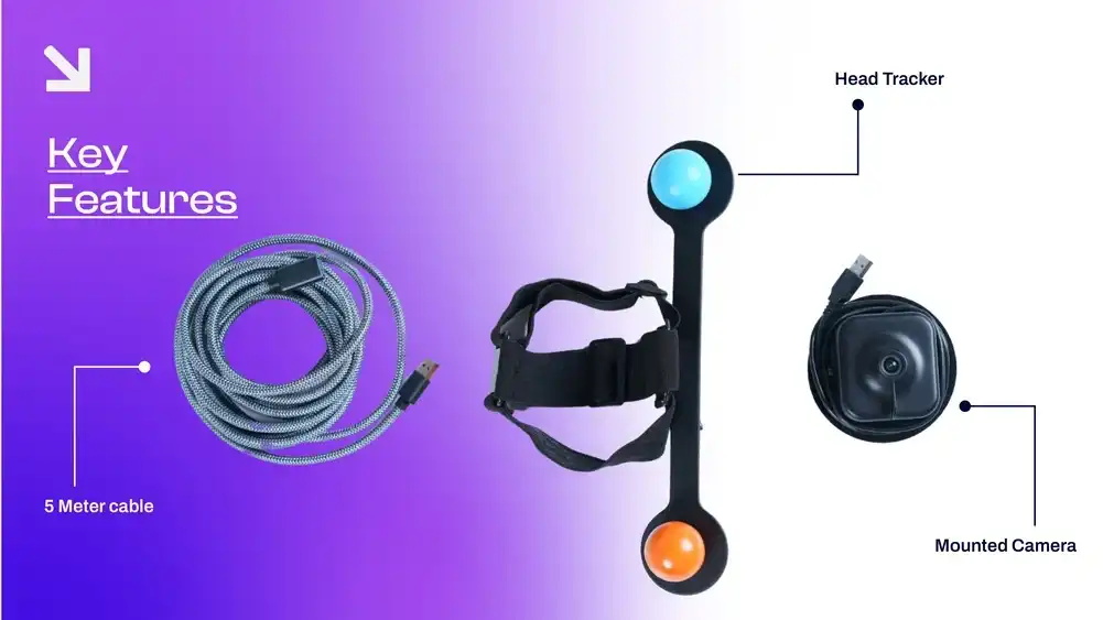 • Electronics-free head tracker: The light, comfortable head tracker uses colored markers for easy tracking.